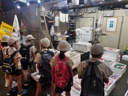 早朝から多くの人が働き、新鮮な魚や果物などが全国から集まり取引されている様子に、子どもたちは驚きと関心の声をあげていました。