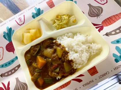 今日は子どもたちの大好きな「カレーライス」が献立に登場です!