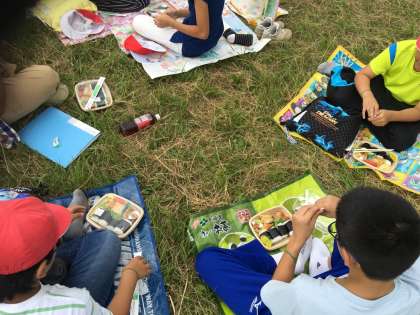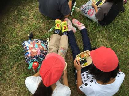 自然のなかでみんなで食べるお弁当は、一段と美味しいです。