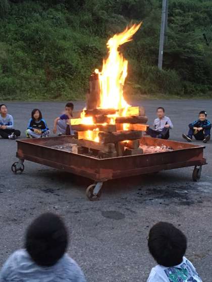 校長先生のギターを伴奏に、燃えろよ燃えろを歌いました。