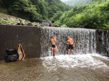 滝修行?をしたり、水のかけあいをしたりと、男女仲良しです。