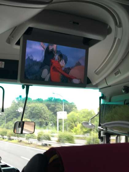 バスの中では、ビデオを見たり、すやすやと寝たり、、様々です。