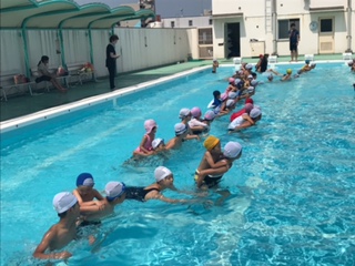 先週決めたペアで、おんぶをしたり、泳ぎ方を教えてあげたり、宝探しをしたりしました。