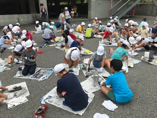 一人一枚、林間の思い出として持ち帰る焼き板を磨きました。
