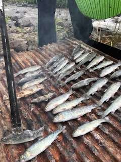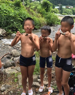 みんながつかまえた魚は、たちばなさんが河原で焼いてくださいました。