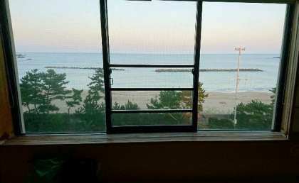 窓を開けると、見事なオーシャンビュー。明日の日の出は、5時54分!見られるといいね。