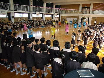 毎年恒例の全校ダンスで1年生を迎えました。
