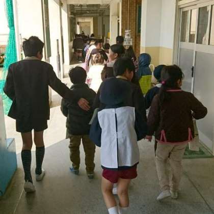 入学説明会の間、5年生の子ども達と来年度入学児童との交流会がありました。新入学児童が楽しめるように遊びを考えたり、階段の登り降りやトイレに気をつけてあげたりと、とても優しくお世話をしてあげていました。すっかりお兄さん、お姉さんの顔になっていました。最高学年に向けて、準備万端です!