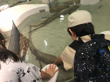 たくさんの種類のお魚や水辺に住む動物に、どんな特徴があるのかを知ったり、実際に触れたりして、楽しく見学することができました。