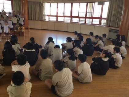 一生懸命歌う園児さんを前に、5年生も真剣な表情で聴き入ってました。