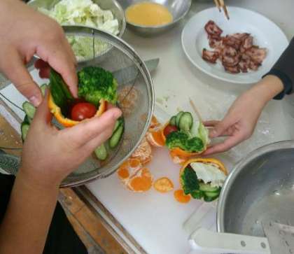 色や栄養のバランスがしっかり考えられたものから、たいへんユニークなものまで、それぞれの班の個性が出た楽しいお弁当作りになりました!