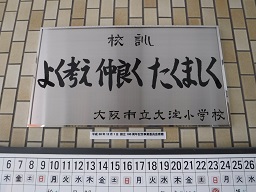 100周年記念として、地域の方々のご協力のもと、玄関に校訓が書かれた銘板を作製、取り付けていただきました。