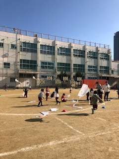 天気も良く、いっぱい走って凧あげを楽しんでいました。途中、友達と凧がからまり大苦戦したこともありましたが、これも経験ですね。
