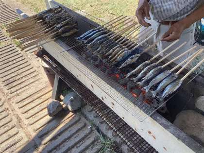 釣った魚を焼いてもらい、食べました!「2匹目食べたい!」とたくさんの児童が口にしていました。