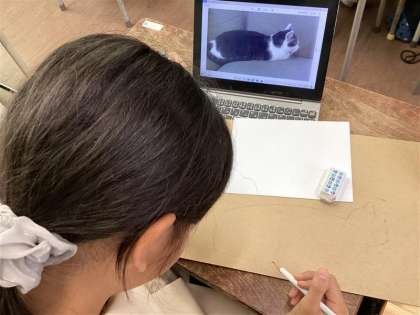 家のペットや好きな動物、食べ物をかいている児童がたくさんいました。