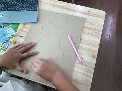 図画工作科で、木の板を使った「伝言板作り」に取り組んでいます。
