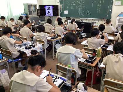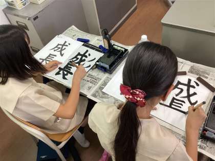 書写の学習で、筆順と画の付き方を意識して「成長」と書きました。