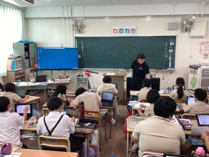 見学後は、学習者用端末を活用して、新聞づくりに挑戦しました。写真やメモを整理しながら、情報を分かりやすくまとめる力(情報活用能力)も高めながら新聞づくりをしています。
