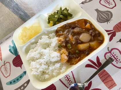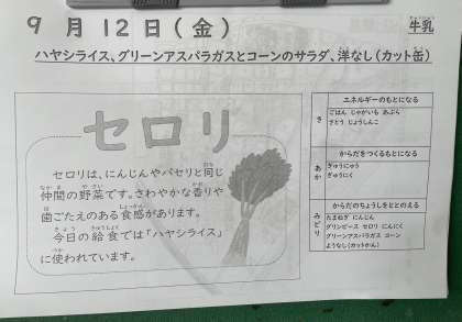 ハヤシライスの「ルゥ」には、小麦粉を使わずに上新粉が使われています。「隠し味」として、「セロリ」が使われています。