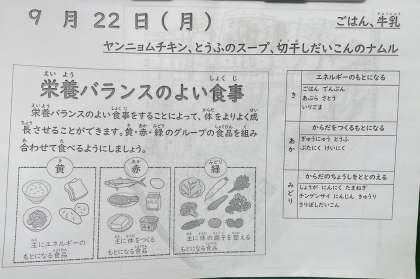 9月22日(月)給食