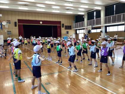 10月15日(水)、5時間目に2年生が体育科で研究授業を行いました。「バランス名人になろう」というテーマで、多様な動きをつくる運動遊びを行いました。グループで考えた「座る・立つ」「バランスを保つ」動きをたくさん行うことができました。子ども達もいきいきと楽しんで取り組むことができていました!