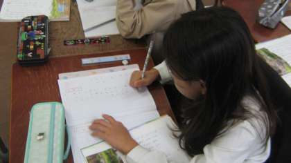 今日は本文をよく読み、挿絵もヒントにしながらビーバーの巣の秘密について考えました。自分の考えを、友達と言い合う「おさんぽ交流」をしたり、見つけた秘密が安全につながっているところを考えたりしていました。最後にしっかりと自分の秘密と効果をノートにまとめていました。