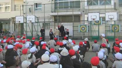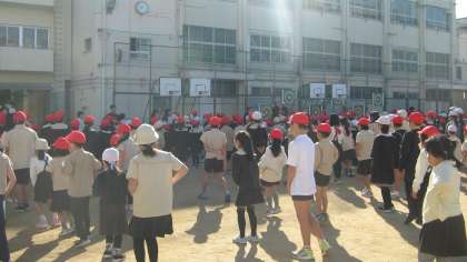 今朝の児童集会は、『いうこと一緒やること反対』の英語バージョンをして遊びました。全部英語だったのですが、集会委員会がいう指示のとおりにみんなで元気に体を動かしていました。