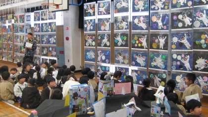 がんばってつくった作品が講堂に集結しています。
