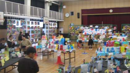 絵画(1・3・5年)と工作(2・4・6年)を展示しています。