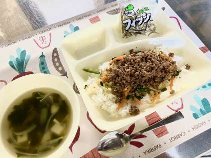 今日は子どもたちに大人気の「ビビンバ」が献立に登場です!