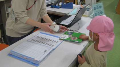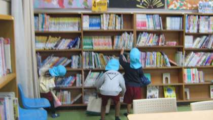 中大淀幼稚園の園児たちが図書室に来てくれました。