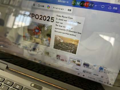 今回は、日本の有名な場所や食べ物などを、自分たちで作ったスライドを使って英語で説明しました。「たこ焼き・すし・ポケモン」などは、海外生もよく知っていて話が盛り上がっていました。