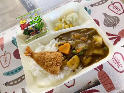 今日は子どもたちの大好きなカレーライスに海老フライがつきます!