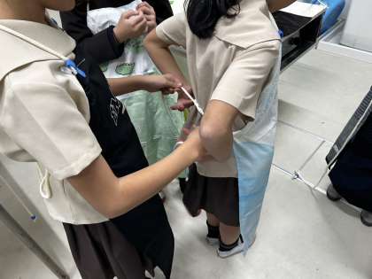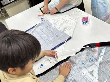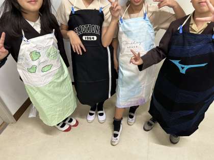 完成したエプロンに子どもたちは達成感いっぱいの様子で、