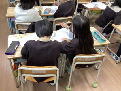 隣同士や班の友だちと自分の考えを伝え合いました。