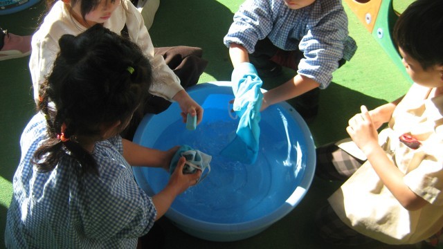 1年生 帽子をきれいに洗いましょう