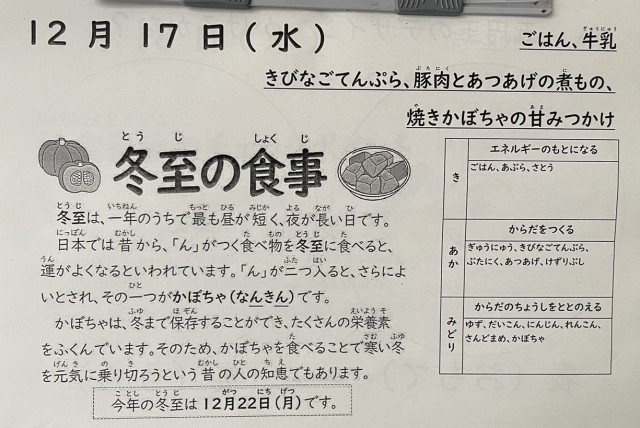 冬至に食べるとよいとされている「なんきん(かぼちゃ)」の登場です!