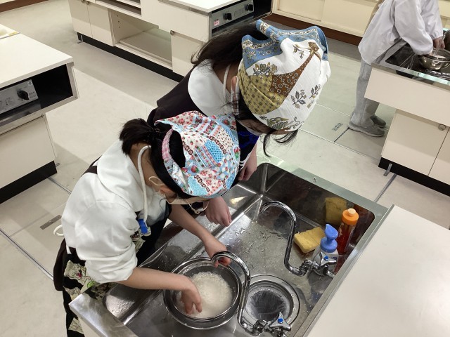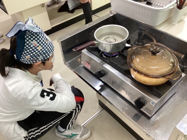 家庭科の学習で、ご飯と味噌汁を作りました。