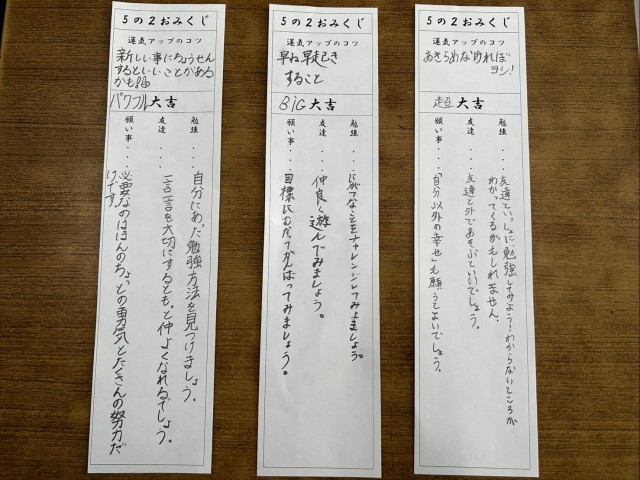 学級活動の時間に今学期の目標や係を決めたり、オリジナルおみくじを作ったりして、新しい学期を楽しくスタートすることができました⛄