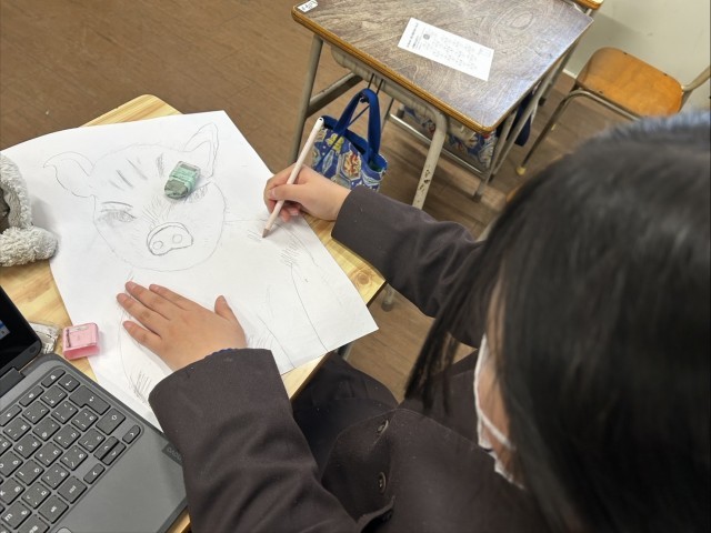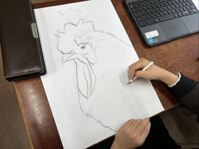 版画の制作に向けて、好きな動物(干支)の下書きをしました。