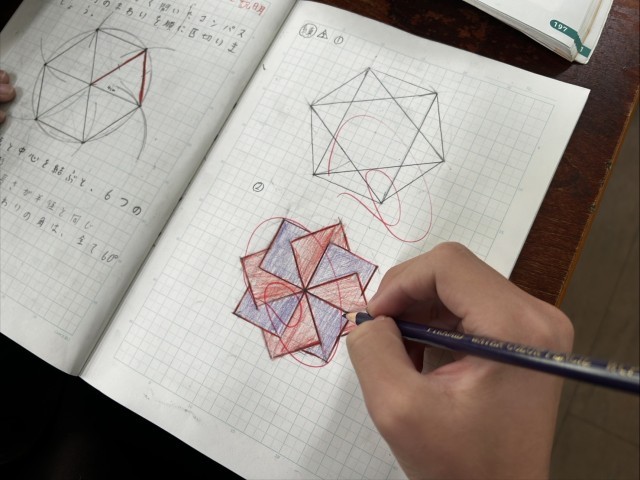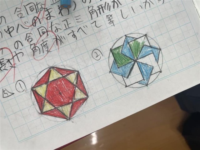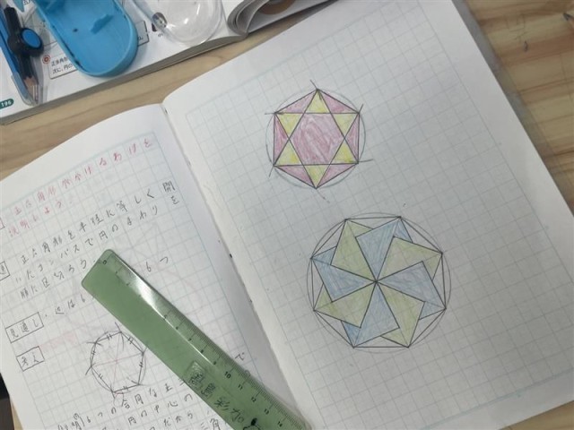 算数科で、前回学習した正多角形のかき方を使って、複雑な図形をかく学習をしました。