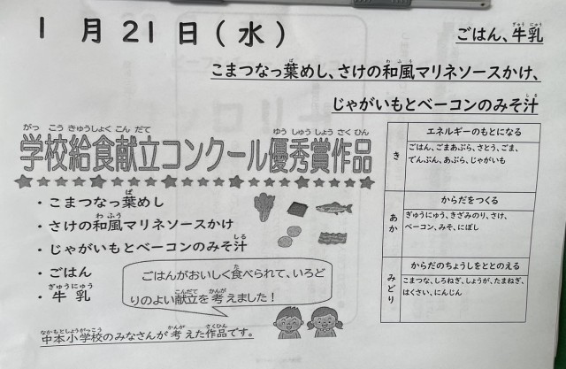 今日の献立は「学校給食献立コンクール優秀賞作品」で選ばれたものでした!