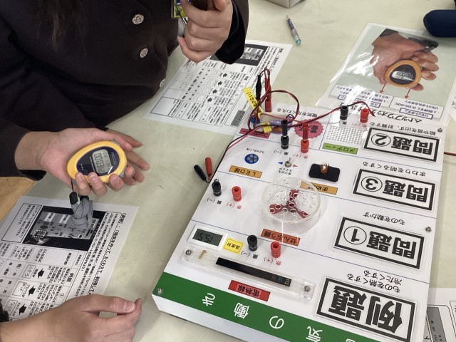 実際に手回しで発電した電気を、他のエネルギーに変換する実験や、