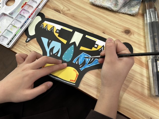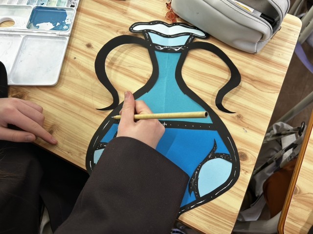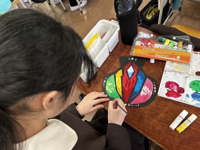 図工の学習で、出来上がったつぼに模様を描きました。