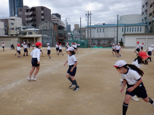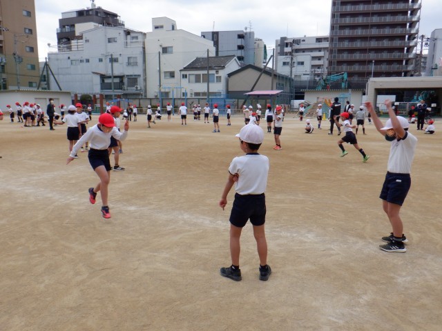 まず少人数に分かれて「じゃんけんダッシュ」で運動場中を走ってから、