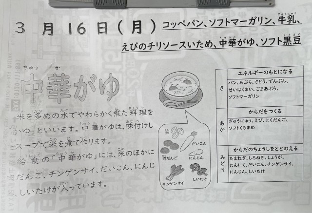 3月16日(月)給食