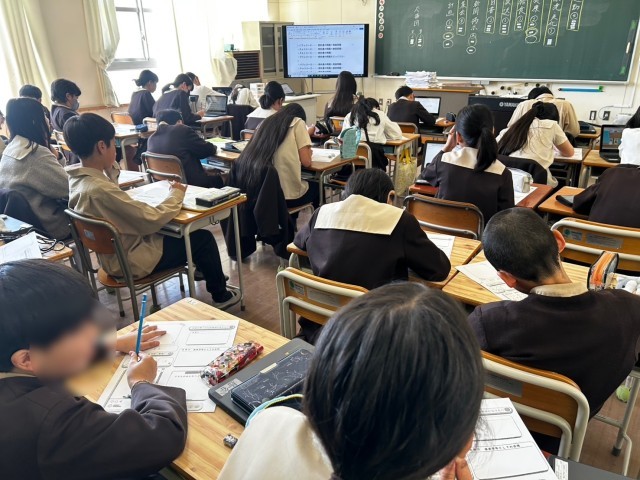 講堂での始業式のあと、担任の発表や学年目標の話がありました。
