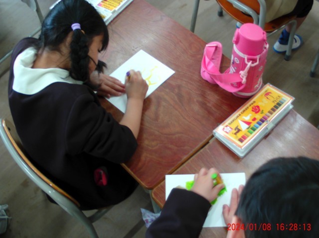 今日は「すきなもの」をパスで何枚も描いています。フルーツ、スポーツ、キャラクターなど、自分のすきなものって何かなー?と真剣に考え、ていねいに絵を描いていました。
