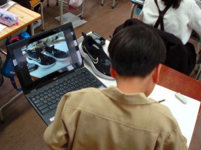 「わたしのくつ」という題材で、お気に入りの靴のデッサンをしています。