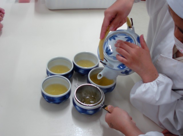「いい香りがする」「ちょっと苦いな」など、感想も伝え合いながら自分で入れたお茶を味わうことができました。